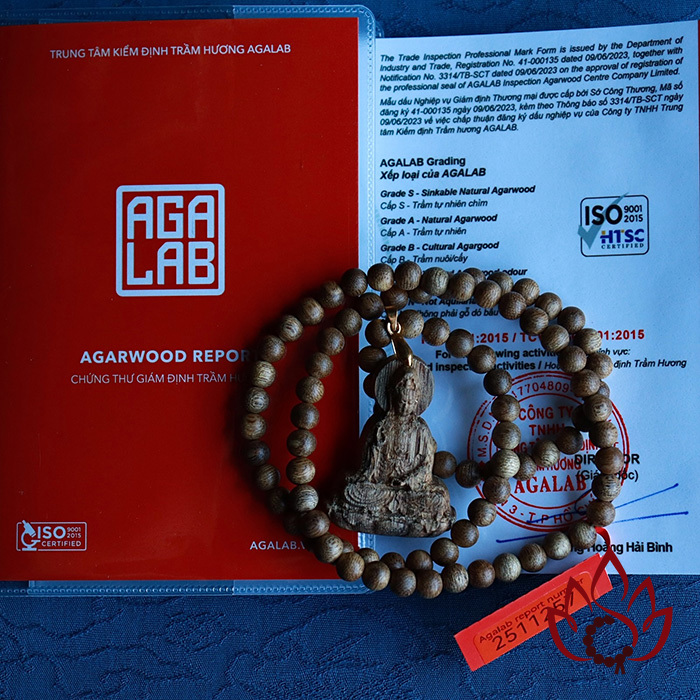 Mỗi sản phẩm đều đi kèm mã kiểm định riêng biệt được cấp bởi Trung tâm giám định trầm hương AGALAB – tổ chức uy tín trong ngành, tiêu chuẩn ISO quốc tế. Khách hàng hoàn toàn an tâm về nguồn gốc trầm tự nhiên, không ép dầu, không hóa chất, đúng như cam kết từ Trầm Hương Phúc Thảo.