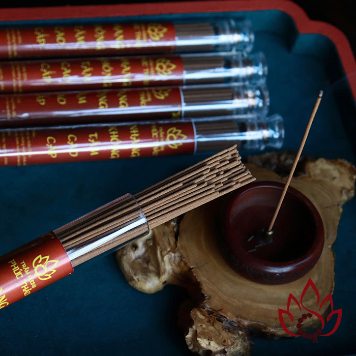 Nhang Trầm Hương không tăm cao cấp – phiên bản tinh tuyển nhất của Trầm Hương Phúc Thảo, được chế tác từ trầm kiến lâu năm Quảng Nam, chọn miếng mỏng nhiều dầu, đã móc tỉa hầu giác sạch sẽ để loại bỏ hoàn toàn phần xác dó. Thành phần 90% trầm nguyên chất, 10% bột keo bời lời tự nhiên – không hóa chất, không hương liệu. Nhang này cho khách thích thưởng trầm, cho mùi thơm ngọt sâu – dày tầng – lưu hương vượt trội y như đốt nguyên trầm kiến miếng.