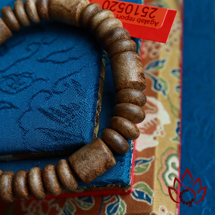 Hình ảnh sản phẩm được minh họa bằng mã kiểm định AGALAB cụ thể (như 2510520), tuy nhiên mỗi vòng trầm khi giao đến tay khách sẽ đi kèm mã kiểm định riêng, tương ứng với từng sản phẩm ở thời điểm bán ra.