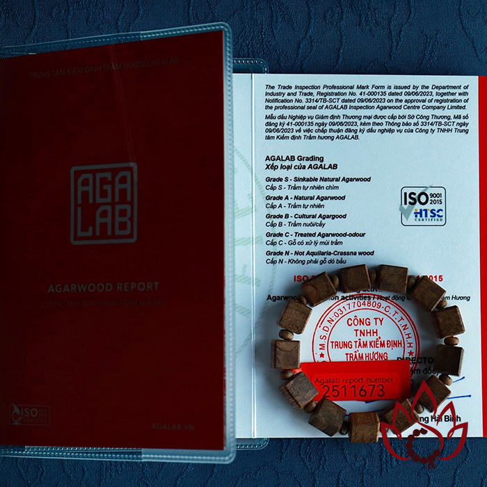 Mỗi vòng tay đều đi kèm mã kiểm định riêng biệt được cấp bởi Trung tâm giám định trầm hương AGALAB - tổ chức uy tín trong ngành, tiêu chuẩn ISO quốc tế. Khách hàng hoàn toàn an tâm về nguồn gốc trầm tự nhiên, không ép dầu, không hóa chất, đúng như cam kết từ Trầm Hương Phúc Thảo.