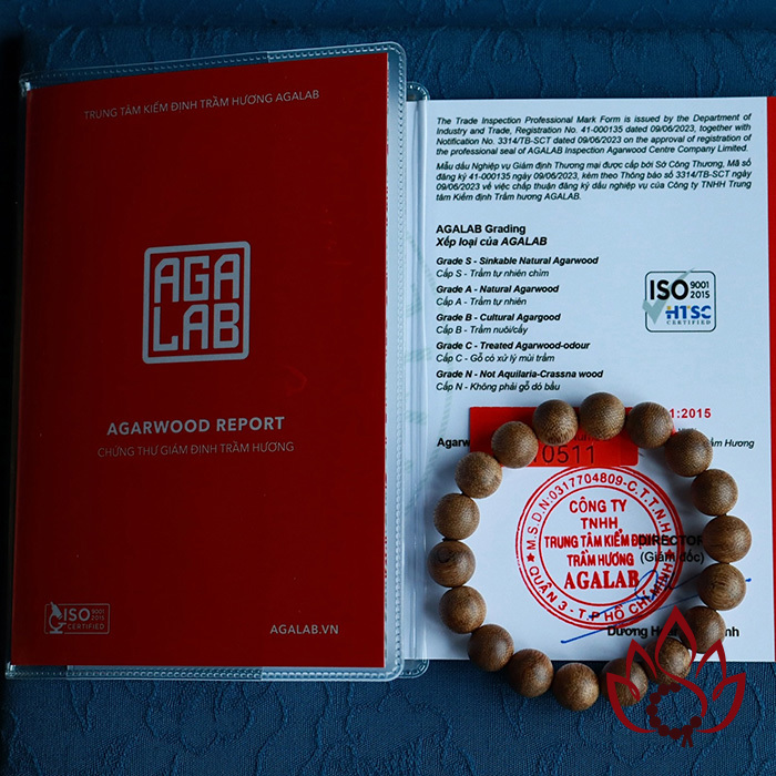 Mỗi vòng tay đều đi kèm mã kiểm định riêng biệt được cấp bởi Trung tâm giám định trầm hương AGALAB – tổ chức uy tín trong ngành, tiêu chuẩn ISO quốc tế. Khách hàng hoàn toàn an tâm về nguồn gốc trầm tự nhiên, không ép dầu, không hóa chất, đúng như cam kết từ Trầm Hương Phúc Thảo.