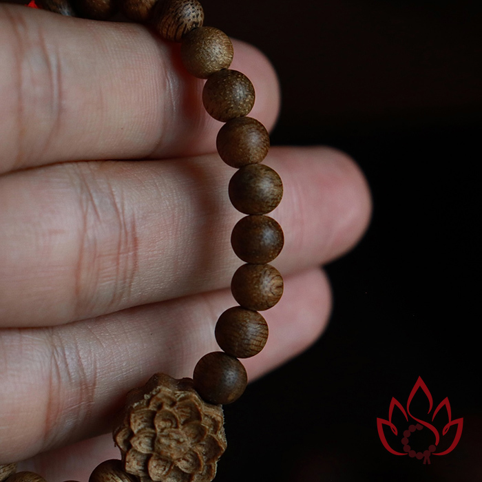 Vòng trầm hương tự nhiên hạt tròn mix hoa sen dành cho nữ – chế tác từ trầm tốc kiến tự nhiên 100%. Loại phôi này tuổi trầm dao động khoảng 5 tới 7 năm. Hương thơm ngọt nhẹ, dễ chịu, thích hợp đeo hằng ngày để thu hút năng lượng tích cực và tài lộc.