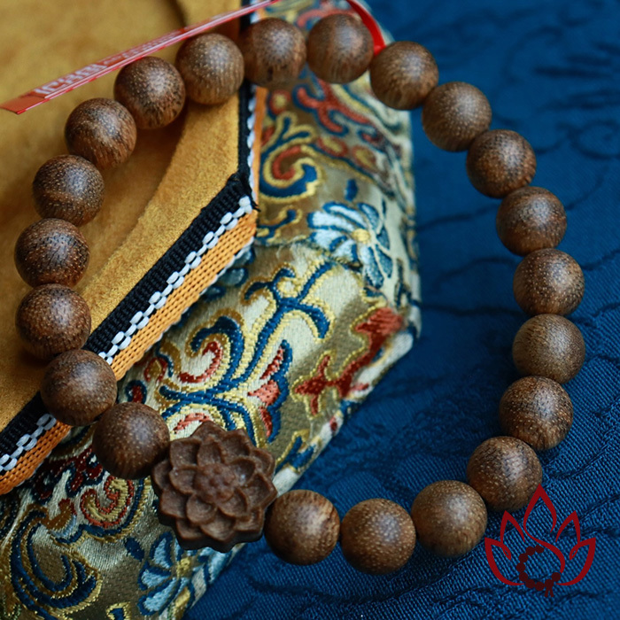 Vòng Trầm Hương Hạt Tròn | Charm Hoa Sen | 8 ly | Trầm Tốc Kiến Tự Nhiên Lâu Năm