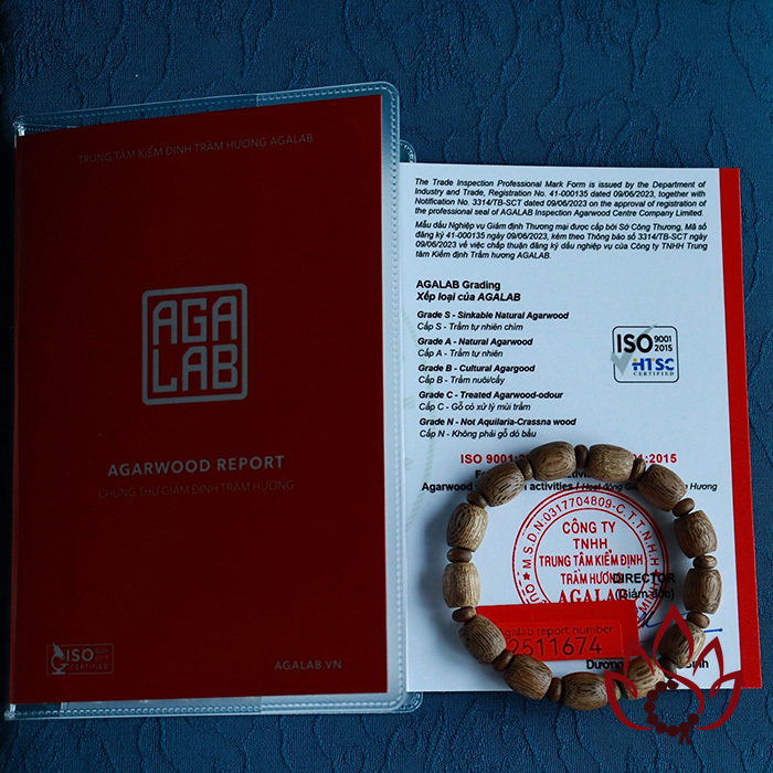 Mỗi vòng tay đều đi kèm mã kiểm định riêng biệt được cấp bởi Trung tâm giám định trầm hương AGALAB - tổ chức uy tín trong ngành, tiêu chuẩn ISO quốc tế. Khách hàng hoàn toàn an tâm về nguồn gốc trầm tự nhiên, không ép dầu, không hóa chất, đúng như cam kết từ Trầm Hương Phúc Thảo.